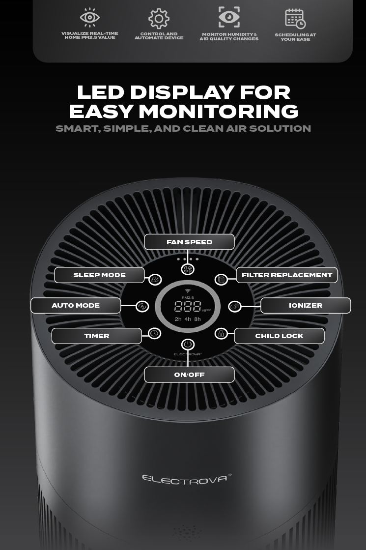 -70%Electrova iPure AirCare 600 Series Ionic HEPA Pro-Level Air Purifier (Medium)—
